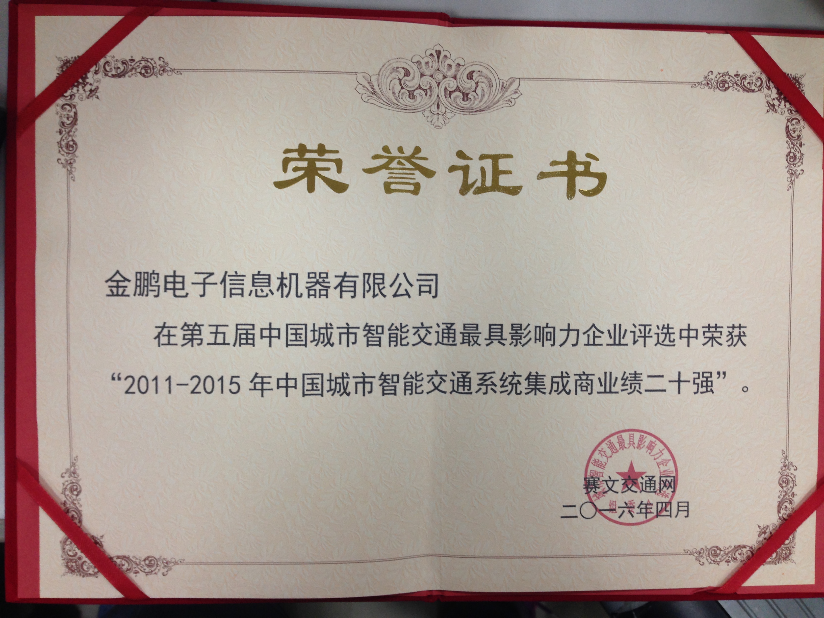 ? ? ??金鵬獲得“2011-2015年中國城市智能交通系統(tǒng)集成商業(yè)績二十強(qiáng)”是行業(yè)內(nèi)外對公司在智能交通領(lǐng)域長期以來所做出的努力與貢獻(xiàn)的肯定和認(rèn)可,也體現(xiàn)了公司品牌影響力日益加強(qiáng)。未來,金鵬將一如既往,為客戶提供更加專業(yè)和優(yōu)質(zhì)的服務(wù)。