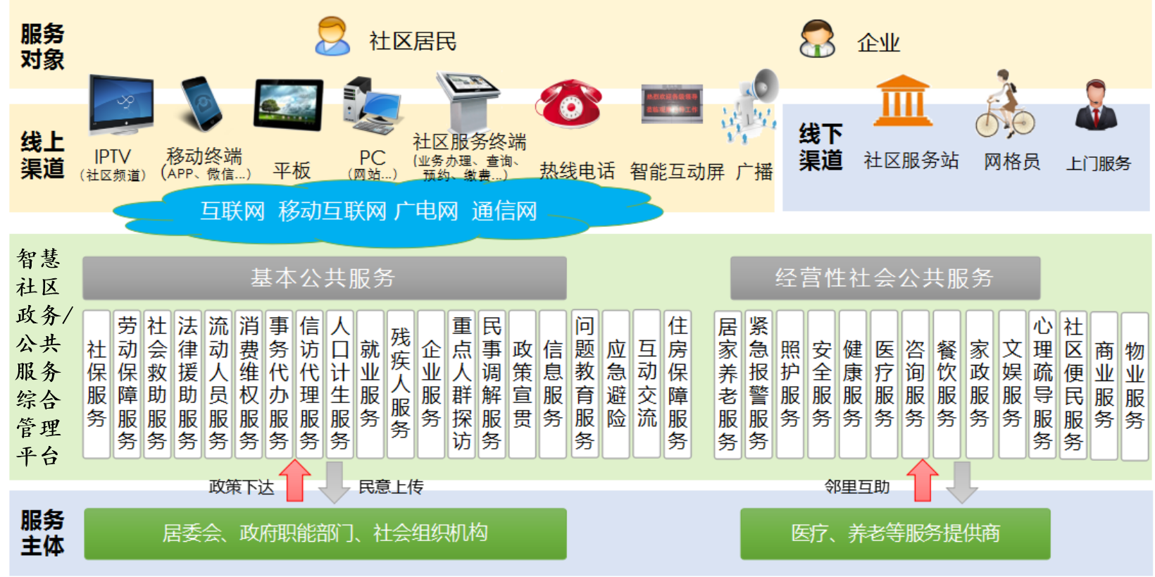 滿足基層政府、商企、家庭和個(gè)人對(duì)社區(qū)管理和服務(wù)的綜合信息服務(wù)要求。