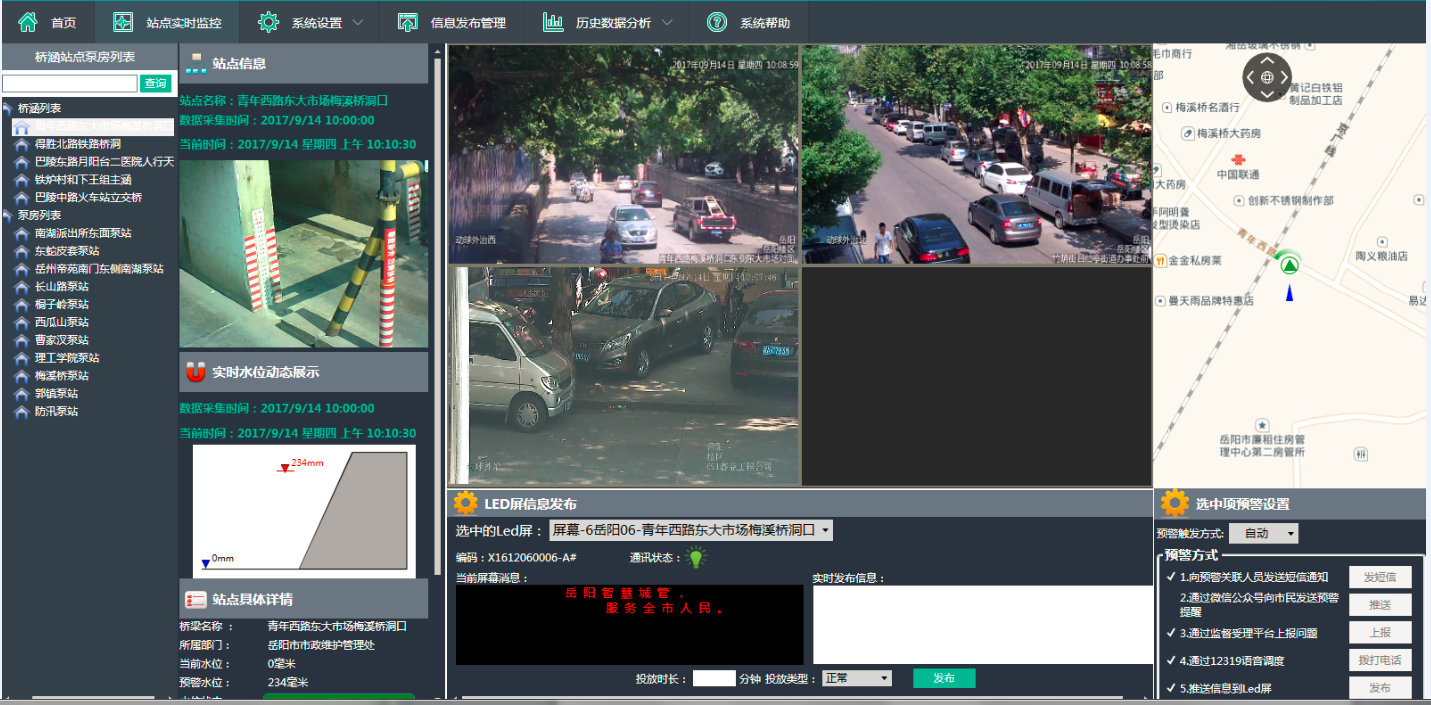 整合視頻資源,建立地圖與實(shí)時(shí)視頻的綜合立體展現(xiàn),接入橋涵隧道點(diǎn)位視頻,實(shí)時(shí)查看橋涵隧道現(xiàn)場水位情況,對(duì)現(xiàn)場情況進(jìn)行定時(shí)圖片抓拍并實(shí)時(shí)上傳到平臺(tái)。實(shí)現(xiàn)對(duì)城市橋涵隧道水位監(jiān)測的可視化管理。